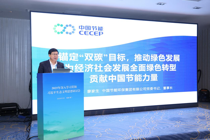 12月1日,2025年深入学习贯彻习近平生态文明思想研讨会在厦门举办。生态环境部党组书记孙金龙,福建省委书记、省人大常委会主任周祖翼出席主论坛并讲话。福建省委副书记、省长赵龙出席主论坛并致辞。生态环境部党组成员、副部长于会文主持研讨会主论坛。集团公司党委书记、董事长廖家生应邀出席会议,并以“锚定双碳目标 推动绿色发展 为经济社会发展全面绿色转型贡献中国节能力量”为题在平行分论坛发言。